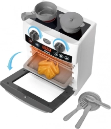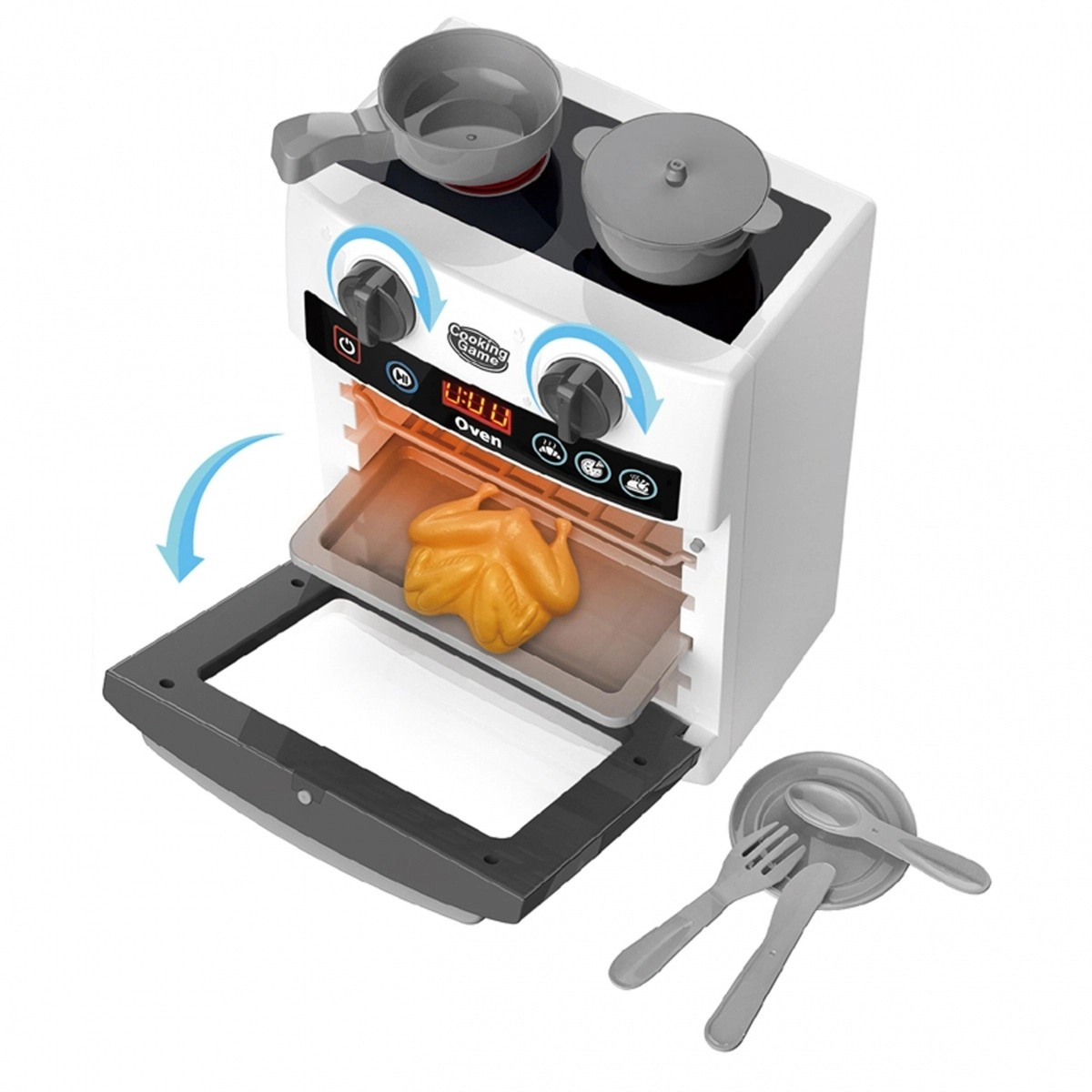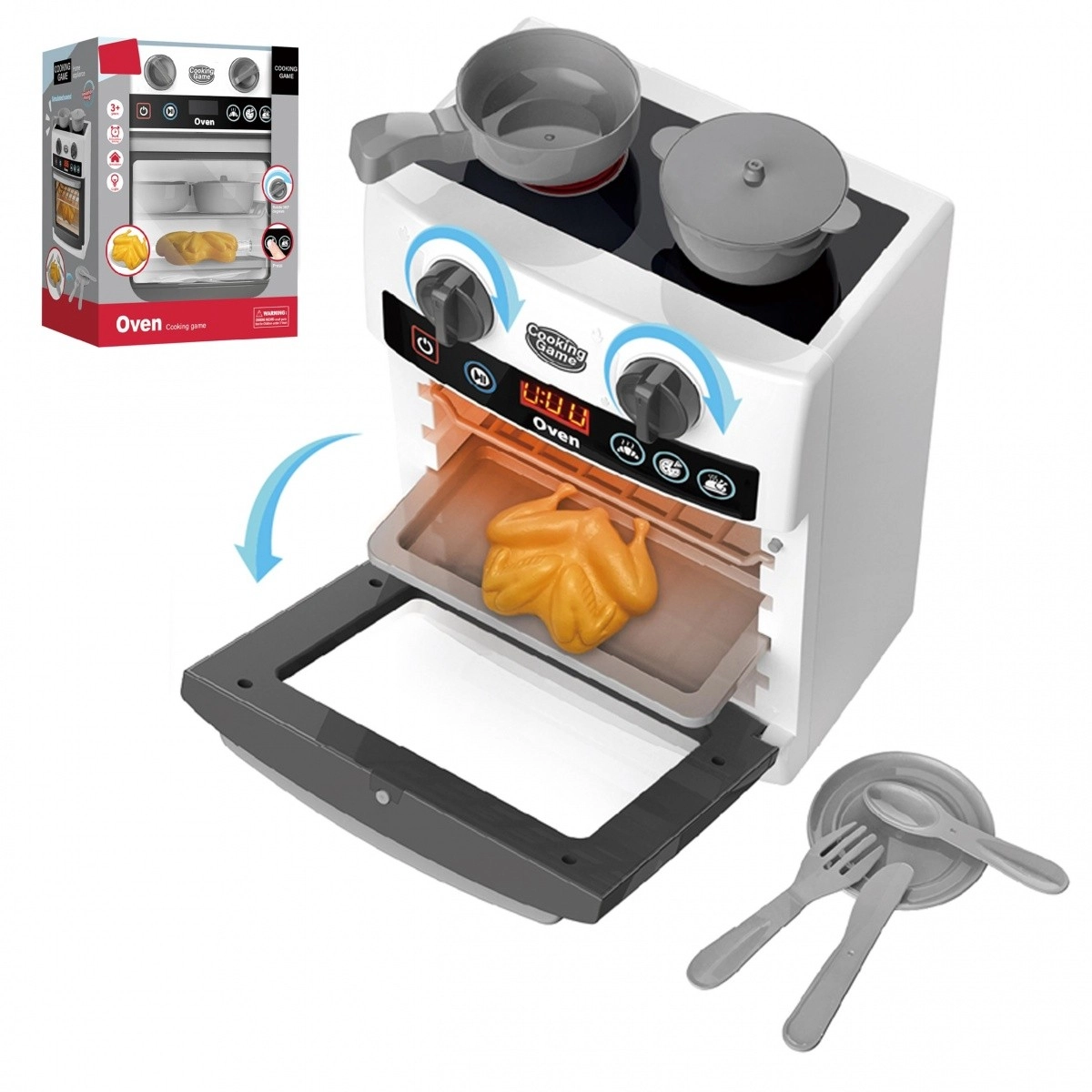 Dette legekøkken med ovn er et fremragende valg til små kokke. Takket være lys- og lydeffekter efterligner det troværdigt rigtige køkkenapparater, så børn kan få timevis af kreativ leg. Når du tænder og vælger en af de tre tilstande, lyser ovnen op, og køkkenet begynder at afgive realistiske madlavningslyde.