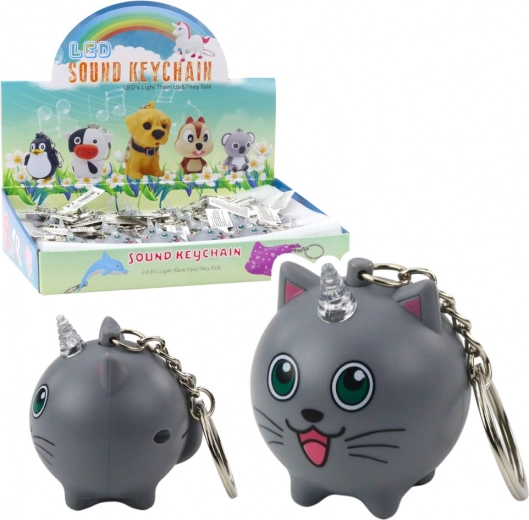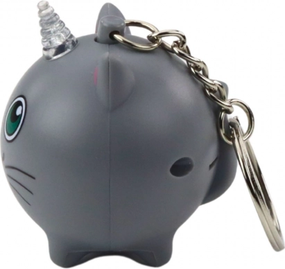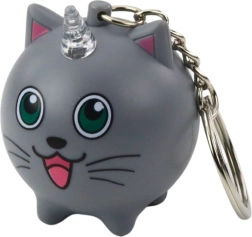 Sødt vedhæng formet som en katte‑enhjørning, perfekt som tilbehør til nøgler, rygsæk eller taske. Har et lysende LED-horn i forskellige farver og en sjov lydeffekt, der aktiveres ved knappen. Takket være holdbar plast og kompakte mål er det let, praktisk og giver altid godt humør.