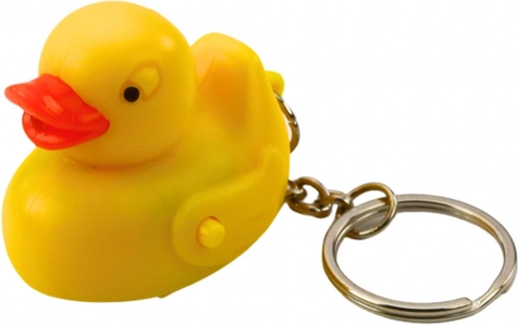 Den glade gule and lyser selv grå dage op – når du trykker på knappen, tændes LED-lyset, og der afspilles en karakteristisk lyd. Perfekt til nøgler, rygsæk eller taske og altid lige ved hånden, når du hurtigt har brug for lys.