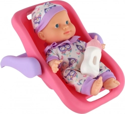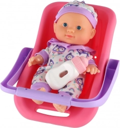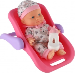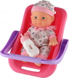 Denne babydukke på 22 cm er en fantastisk ledsager for alle børn, der elsker at lege forældre. Den faste plastkrop sikrer lang holdbarhed og sikker leg, mens den lette bæresele/bilbarnestol gør det nemt at transportere og lege både hjemme og på rejser.