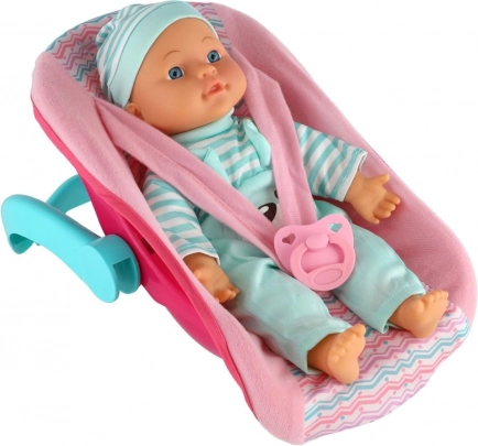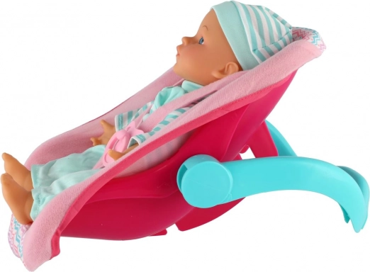 I sættet medfølger en praktisk bæresele/bilautostol med behageligt håndtag og sikkerhedsstropper, som gør det let at bære, sætte og blidt vugge dukken. Der medfølger også en sut – et ideelt tilbehør til beroligelse og putning. Leg med dukken understøtter udviklingen af finmotorik, kommunikation og empati.