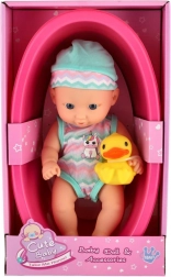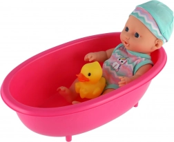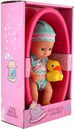 Denne søde dukke er klar til ethvert badeeventyr. Placeret i et let plastbadekar med en gul lille and motiverer den børn til fantasifuld rolleleg med babypleje, indlæring af rutiner og udvikling af sociale færdigheder.