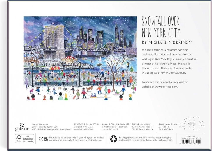 Nyd afslapning og underholdning med et kvalitetspuslespil med 1000 brikker, der viser en dramatisk vinterscene fra New York. Pakken indeholder en motivskabelon, og når du er færdig, får du et storformatbillede på 68,6 × 50,8 cm. Ideelt til elskere af bymotiver, vinterstemning og premiumpuslespil fra GALISON.