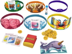 Det populære gættespil Hedbanz er tilbage i en moderne udgave. Tag et tematisk pandebånd på, sæt et kort i, så de andre kan se det, og spørg klogt: “Er jeg et dyr? Er jeg mad? Er jeg en ting?” Takket være de simple regler er spillet let at gå til og fungerer perfekt til familiesammenkomster, fødselsdage og hyggelige aftener med venner.