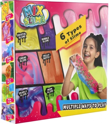 Dette farverige slim-sæt er ideelt til små skabere. Du finder 6 forskellige typer slim med varierende tekstur og opførsel – fra blød og sej til mere kompakt og formbar. Det medfølgende tilbehør gør det muligt at mixe, dekorere og finde på unikke kombinationer af farver og effekter.