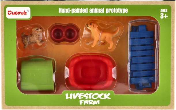 Dette legesæt indeholder to hundefigurer med realistiske detaljer, hegn til at lave en indhegning samt praktisk tilbehør som skål og hundeseng. Børn kan skabe deres egen verden og øve sig i at tage sig af dyr.