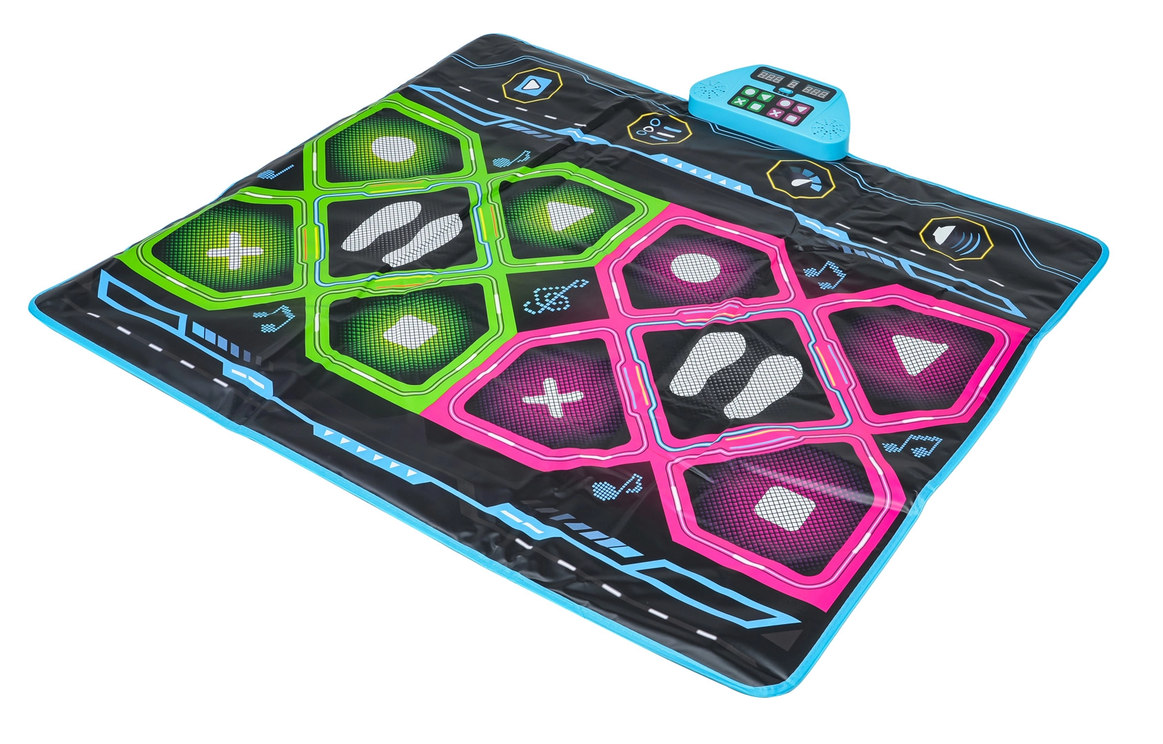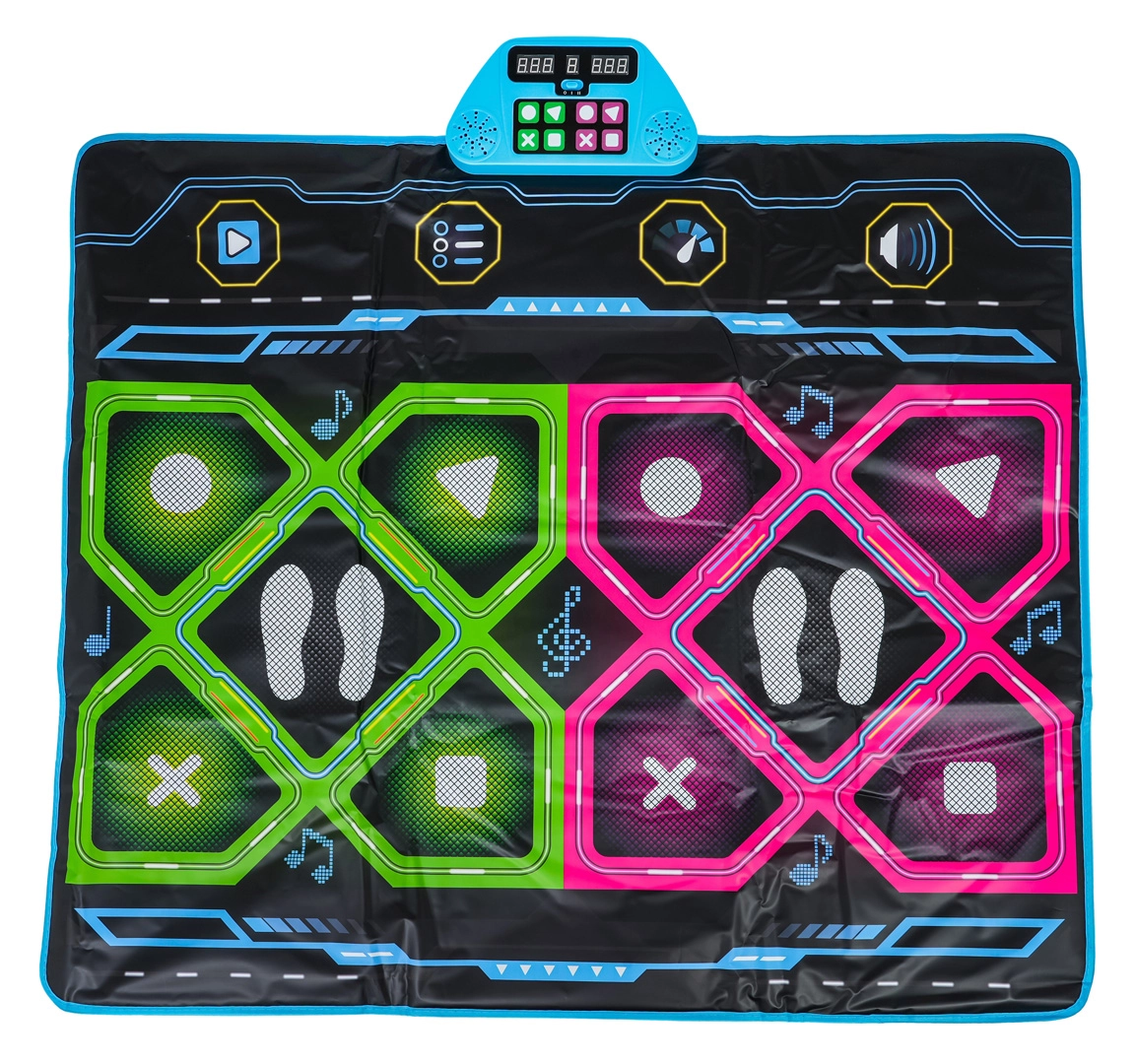 Denne to-personers musik- og dansemåtte forvandler dit hjem til et sjovt dansemiljø. Takket være den frie danseflade kan to børn danse samtidigt, følge lysskærmen og prøve at ramme berøringsfelterne med symbolerne cirkel, trekant, kryds og kvadrat. Skærmen viser point og spilniveauer og suppleres af lyd- og lyseffekter.