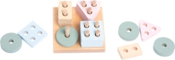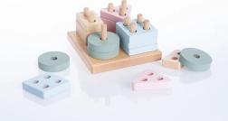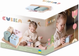Træpuslespillet CUBIKA Pastel sortering af former IV er et ideelt redskab til den første læring. Børn placerer 16 perforerede geometriske former på den kvadratiske base og træner dermed naturligt skelnen mellem former og farver, hånd-øje-koordination og tålmodighed. Pastelfarverne er visuelt beroligende og motiverer til leg.