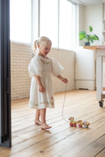 Legetøjet er designet til naturligt at udvikle barnets færdigheder og bringe glæde hver dag. Med en snor på cirka 60 cm er det nemt at trække selv for mindre børn.