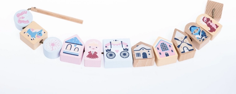 Opdag det magiske snøresæt i blide pastelfarver fra CUBIKA, som udvikler finmotorik, tålmodighed, hukommelse og logisk tænkning. Sættet indeholder 12 træelementer med eventyrmotiver, en 45 cm snor med træpind og 8 skabeloner til sjov snøring. Fremstillet af kvalitetsahorn og bøg med sikre vandbaserede farver. Certificeret af TÜV, opfylder EN 71, produceret i Europa.