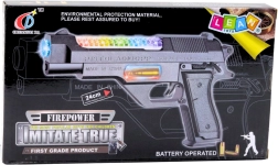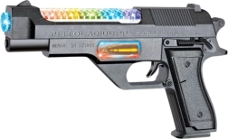 Leder du efter en spændende legetøjspistol, der imponerer med effekter og samtidig er sikker? Denne batteridrevne pistol sørger for lyseffekter med farvede dioder og autentiske skudlyde, som gør legen endnu mere dynamisk. Det er bare at trykke på aftrækkeren, så kan eventyret begynde.