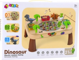 Det interaktive dinosaur-fiskeribord er den ideelle legeting til at udvikle tålmodighed, koncentration og finmotorik. Den roterende spilleplade sætter dinosaurerne i bevægelse, hvilket øger sværhedsgraden og giver legen dynamik. Takket være den store overflade er det velegnet til fælles leg for flere børn, og det understøtter sund konkurrence og samarbejde.