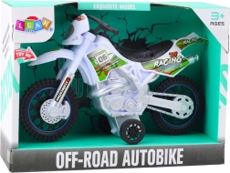 Dette motocrosslegetøj er det ideelle valg til børn, der elsker racere og terrængående maskiner. Takket være det realistiske design inspireret af offroad-motorcykler og den attraktive hvid-grønne farvekombination kan børnene nemt forestille sig deres egne racereventyr.