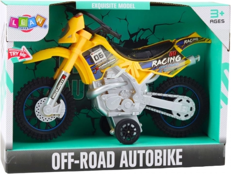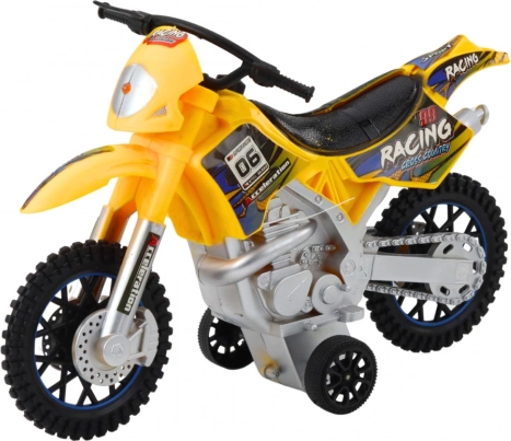 Motocross-legetøj til små elskere af terrænkøretøjer byder på realistisk design, lys- og lydeffekter samt robust konstruktion. Store terrænhjul og den markante gule farve med racerpræg understreger det sporty look og sikrer actionfyldt sjov.