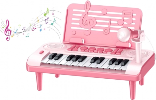 Opdag glæden ved musik med dette kompakte børneklaver – ideelt til de første skridt ind i toners og rytmers verden. Det tilbyder 24 tangenter, 8 instrumentlyde, 4 rytmer samt funktioner til optagelse og afspilning. Medfølgende mikrofon til karaoke og nodestativ får enhver lille musiker til at føle sig som på scenen. Den lette konstruktion i holdbar ABS og nem transport sikrer sjov både hjemme og på farten.