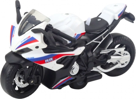 Sportsmotorcykel til børn med svinghjulsdrevet bevægelse, realistiske lys- og lydeffekter og robust konstruktion. Ser fantastisk ud, er let at betjene og er klar til leg direkte fra kassen takket være 3× AG13-batterier (inkluderet). Farven leveres tilfældigt.