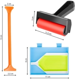 I pakken finder du 4 applikatorer ("penne"), 3 riflede skåle til sortering og opsamling af diamanter, pincet, lim, transporttaske og rulle. Sættet er ideelt til både begyndere og øvede og egner sig perfekt til kreativ hygge med børn og venner.