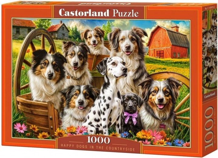 Nyd afslapning med at lægge et kvalitetspuslespil med motiv af glade hunde på landet. Indeholder 1000 brikker, byder på skarpe og mættede farver og måler efter samling ca. 68 × 47 cm.