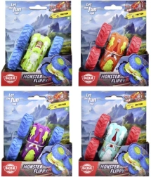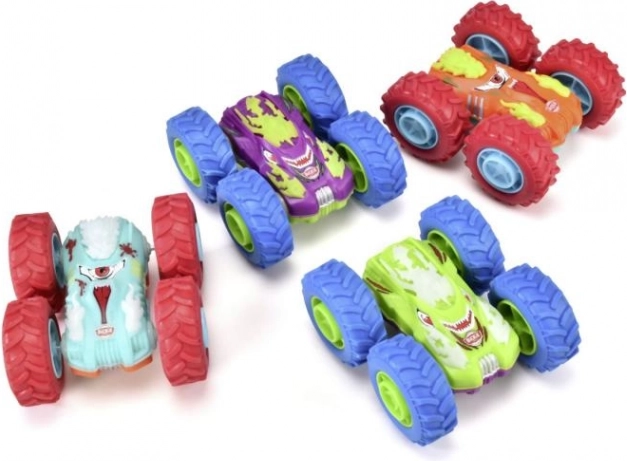 Takket være den tosidede konstruktion og de store hjul kan bilen lave flips, kolbøtter og køre videre selv efter en vending.