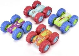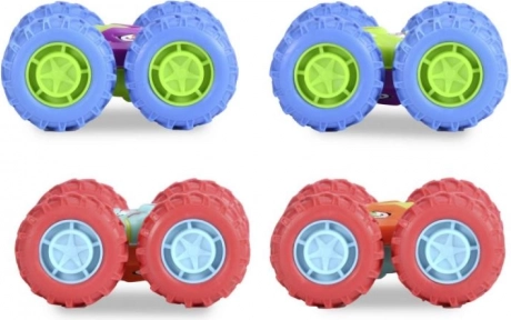 Denne stuntbil er som skabt til børn, der elsker action. Med svinghjul er det nok at give den et skub, slippe og se bilen suse frem, vende rundt og fortsætte med at køre selv efter en rotation. Ekstra store hjul giver god stabilitet, greb og let passage over ujævnheder.
