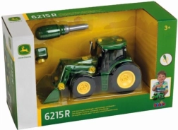 Oplev glæden ved at bygge og lege med den realistiske model af traktoren John Deere 6215 R. Saml chassiset, sæt dækkene på, tilføj sædet, førerkabinen og motorhjelmen – på kort tid har du en funktionsdygtig model med frontlæsser klar.