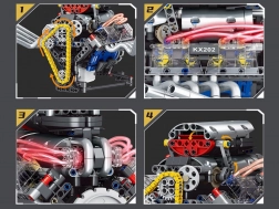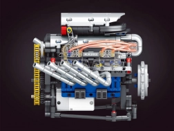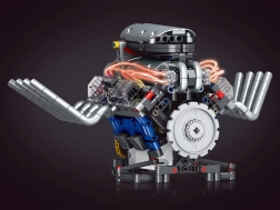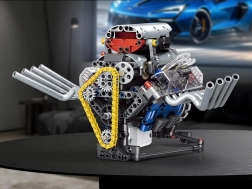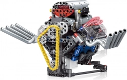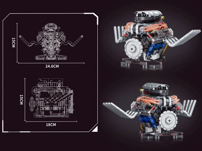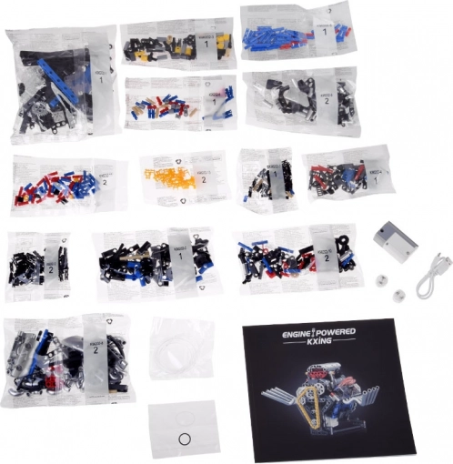 Dette tekniske byggesæt guider dig trin for trin gennem opbygningen af en funktionsdygtig motormodel med strøm fra en akkumulator. Takket være den gennemtænkte konstruktion ser du i praksis, hvordan stempel, tandrem og svinghjul arbejder, og hvordan energien overføres i mekanismerne.