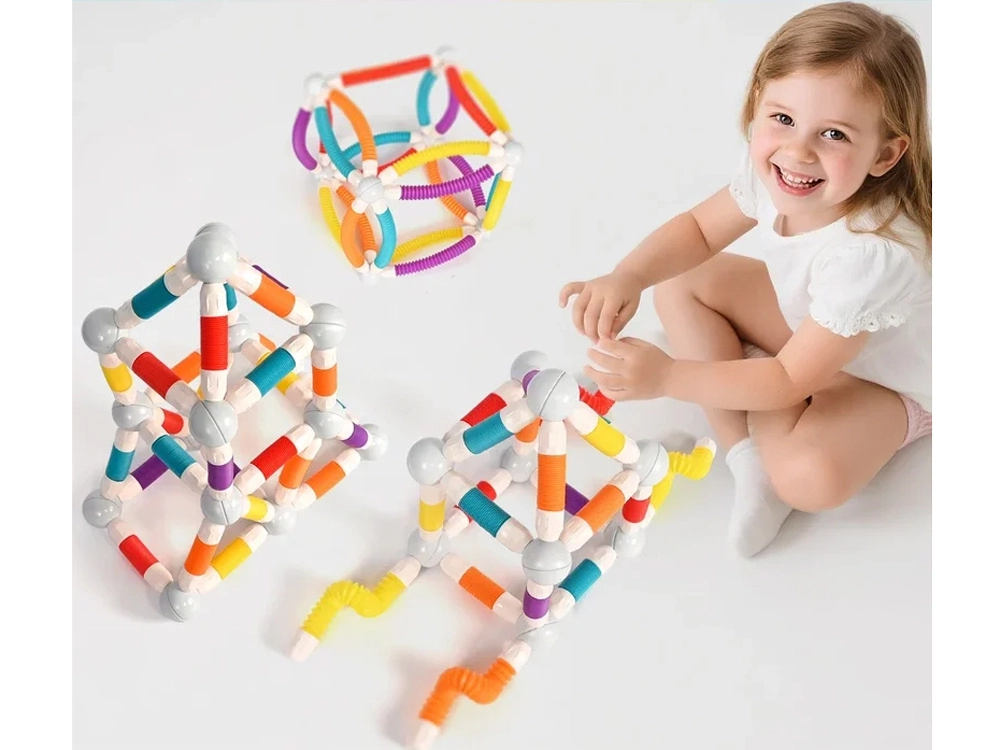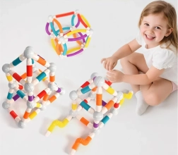 Dette innovative magnetiske byggesæt af fleksible rør og solide kugler giver børn timevis af kreativ leg og læring. Delene tiltrækkes nemt ved hjælp af magneter, og takket være rørernes bøjelighed kan man skabe stabile og dynamiske 3D-modeller – fra simple former til opfindsomme konstruktioner.