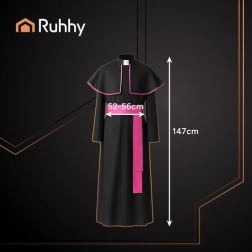 Sættet inkluderer en lang sort soutane med krave, en kappe med kantning og et liturgisk bælte, som tilsammen skaber et markant og værdigt look. Med den universelle størrelse XL/XXL tilpasser det sig komfortabelt til forskellige kropstyper og passer perfekt til Halloween, maskebal, temafester og scenebrug.