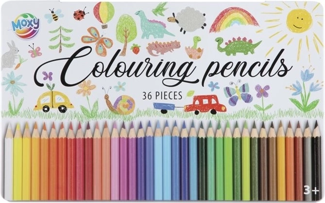 De populære MOXY-farveblyanter byder på en bred palet af farver i en kompakt og sikker emballage. Den metaliske æske med legende motiv er solid, let at bære og holder blyanterne pænt organiseret, så de altid er lige ved hånden.