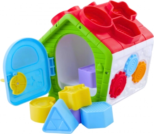 Det interaktive læringshus er et multifunktionelt legetøj, der støtter finmotorik, logisk tænkning og hånd-øje-koordination. Hver væg gemmer på en ny aktivitet: formsorterer, farverigt lille klaver, skydedyr, drejelige tandhjul og en dør, der kan åbnes med nøgle. Takket være lysende tangenter og muntre melodier vender børn gerne tilbage til legen og træner tålmodighed og koncentration.