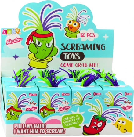 Oplev original underholdning med figurerne “Skrigende grøntsag”. Hver figur har farvede “hår”, og når du trækker i dem, lyder et andet morsomt skrig. Børn vil elske den enkle mekanisme og de uendelige lege-muligheder – fra solo-leg til konkurrencer med venner.