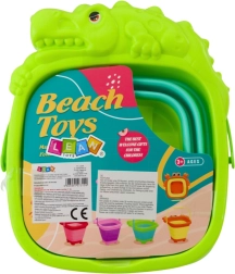 Den sammenklappelige silikonespand med krokodillemotiv er et praktisk og sjovt legetøj til små sandopdagelsesrejsende. Når den er klappet sammen, har den en lav profil, så den passer i rygsæk eller barnevogn og er klar til ethvert eventyr ved vandet. Det robuste design håndterer vand, sand og små “skatte”.