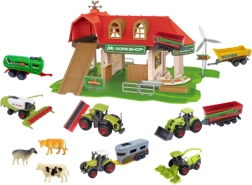 Dette detaljerede gårdsæt er ideelt til små dyreelskere og fans af landbrugsmaskiner. Børn kan organisere arbejdet på gården, transportere hø på trailerne, tage sig af dyrene og udforske hverdagen på landet.
