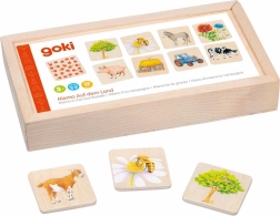 Træ-memo Vesterland fra GOKI giver børn glæden ved at udforske livet på gården og i omgivelserne. Med 32 robuste brikker (16 par) træner børn på en legende måde hukommelse, fokus og billedgenkendelse. Den træfremstillede kvalitet med glatte kanter ligger godt i hånden og er sikker for små spillere.