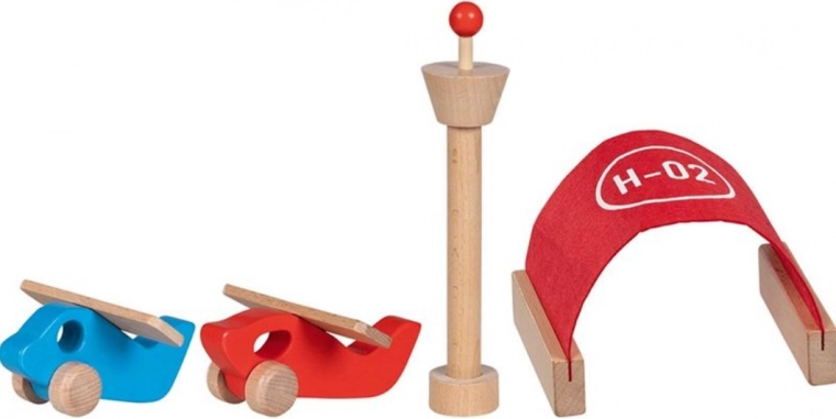 - Inkluderer tilbehør: 2 træfly, kontroltårn og hangar