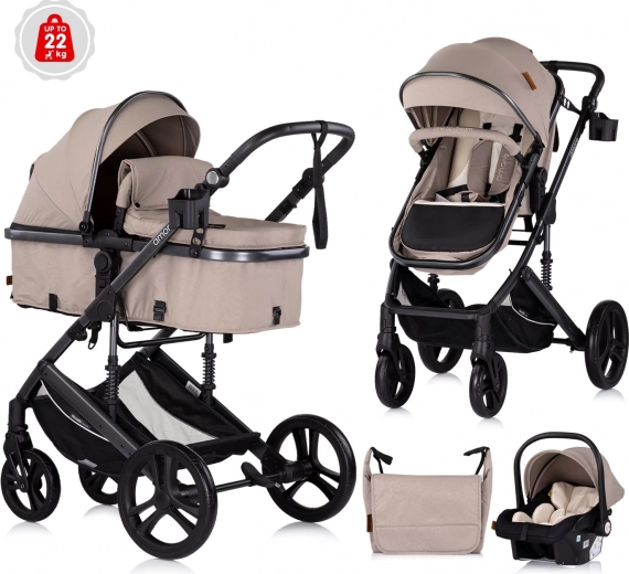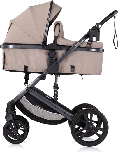 CHIPOLINO Amore 2-i-1 Tiramisu er en praktisk barnevogn, som let tilpasses fra fødslen og op til førskolealderen. Sportsdelen kan på et øjeblik omdannes til en liggedel til nyfødte op til 6 måneder. Det klassiske stel med integreret affjedring sikrer en jævn kørsel både i byen og på ujævnheder.