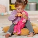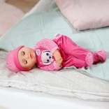 Den søde dukke BABY born Anna i et mørkerosa sæt er den ideelle lege- og krammekammerat. Hun har et blødt krop for behagelig bæring, blinkende øjne, og i pakken finder du en flaske, heldragt og en hue. Et godt valg som den første dukke til børn fra 1 år.