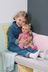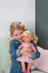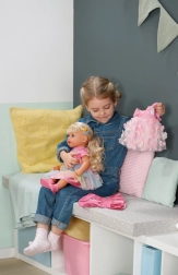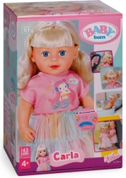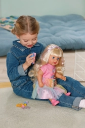 Dukken BABY born Carla giver børn masser af muligheder for kreativ leg. De lange og bløde nylonlokker er perfekte til at rede, lave hestehaler og flette. Sættet med 7 tilbehør – børste, elastikker og spænder – stimulerer fantasien ved daglig styling.