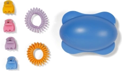 - 7 hårtilbehør – børste, 2 elastikker, 4 spænder.