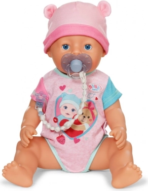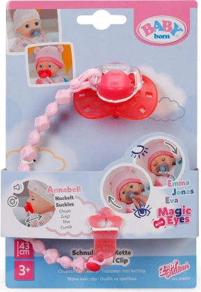 Forkæl din dukke med realistisk pleje med en sut med klips, som nemt sættes på tøjet og takket være klipsen ikke bliver væk. Den er fuldt kompatibel med BABY born og Baby Annabell dukker i størrelse 43 cm og udnytter deres smarte funktioner – når dukken sutter, afgiver den karakteristiske lyde, og efter en let drejning af sutten kan den lukke øjnene og “falde i søvn”.