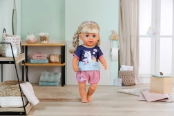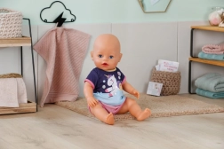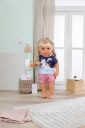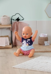 Denne behagelige pyjamas med blød T-shirt og lyserøde shorts er designet til BABY born-dukker på 43 cm. Takket være den elastiske talje og det smarte Easy Fit-snit kan børnene nemt klare påklædningen selv, så de får mere selvstændig leg og rolleleg før sengetid.