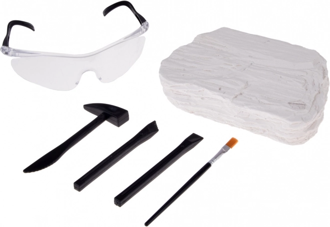 - Realistisk arkæologi-oplevelse: mejsler, hammer, pensel og beskyttelsesbriller