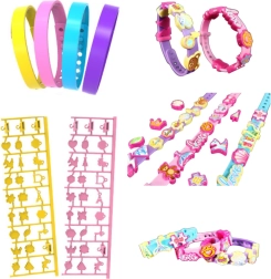 Skab dine egne unikke smykker med dette kreative DIY-sæt. Det indeholder 4 justerbare gummiarmbånd i forskellige farver, et stort udvalg af vedhæng med bogstaver og mønstre samt farverige klistermærker til unik dekoration. Sjov aktivitet, der udvikler kreativitet, finmotorik og æstetisk sans.