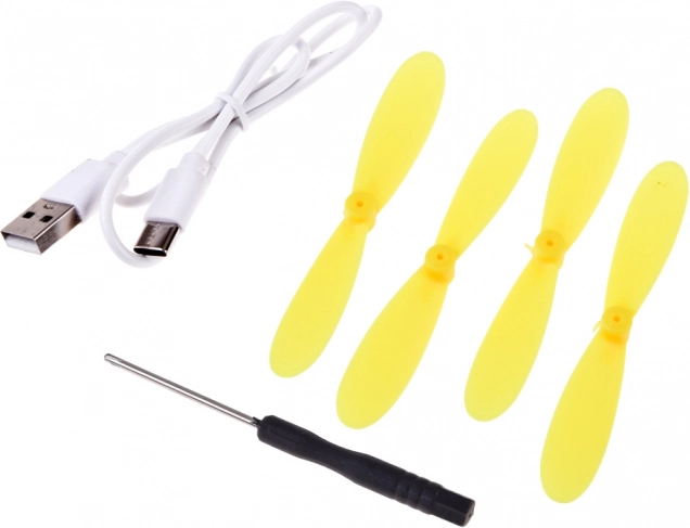 - Batteri 3,7 V 500 mAh – op til 10 minutters flyvning, opladning ca. 60 minutter