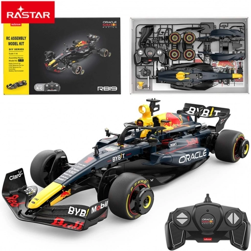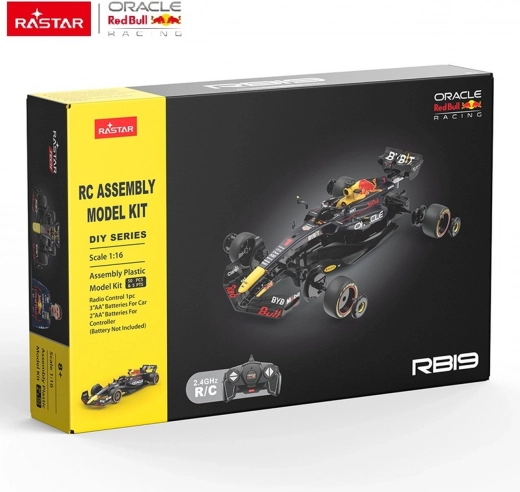 RC Formel RED BULL F1 RB19 1:16 fra Rastar med 2,4 GHz, gummihjul og uafhængig affjedring. 55-dels sæt, realistiske detaljer. AA-strømforsyning.