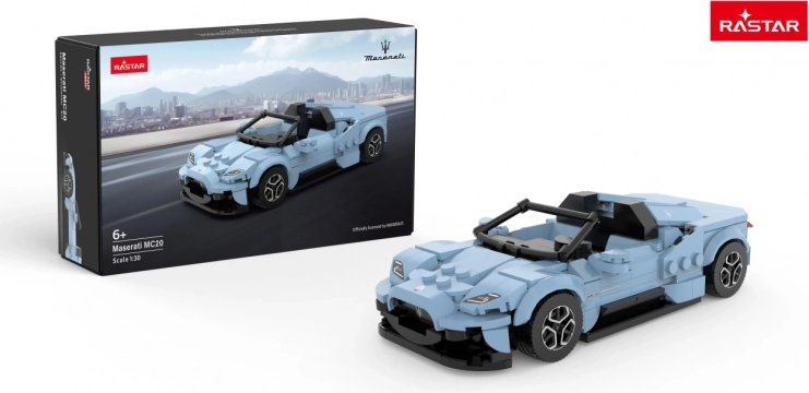 Byggesæt MASERATI MC20 1:30 fra Rastar, 370 dele, ABS-plast, gummihjul, detaljeret interiør. Certificering CE/EN71/RoHS. Fremragende gave til bilentusiaster.