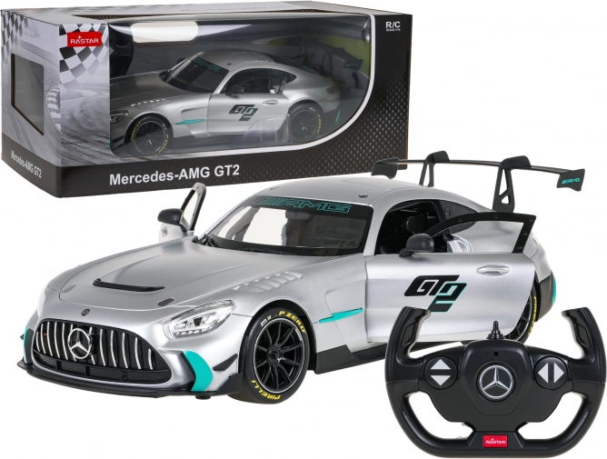 Oplev realistisk kørsel med den officielt licenserede model af Mercedes‑AMG GT2 i skala 1:14 fra Rastar. Denne præcist udførte RC‑bil tilbyder kørsel i alle retninger, åbningsbare døre, LED‑belysning og gummihjul for fremragende vejgreb. Takket være 2,4 GHz radio er styringen jævn og uden forstyrrelser.