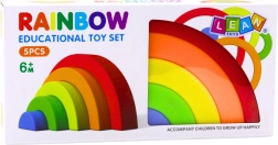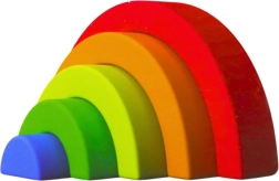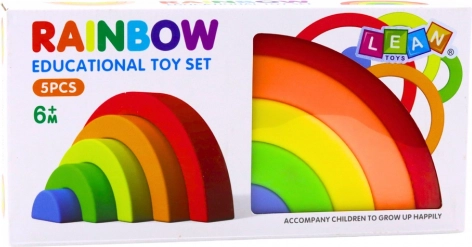 Farverig regnbue-puslespil af blød gummi er et sikkert sansemotorisk legetøj til de mindste, som fremmer kreativitet, logisk tænkning og koordination. Fem fleksible dele i forskellige størrelser muliggør fri konstruktion og uendelige kombinationer, mens det bløde materiale og de afrundede former sikrer komfortabel og sikker leg.