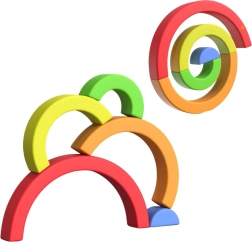 Takket være fem elementer i forskellige størrelser kan børn bygge buer, tunneler og originale konstruktioner. Legetøjet understøtter udviklingen af finmotorik, øje–hånd-koordination og rumlig forestillingsevne – helt sikkert takket være det bløde materiale uden skarpe kanter.