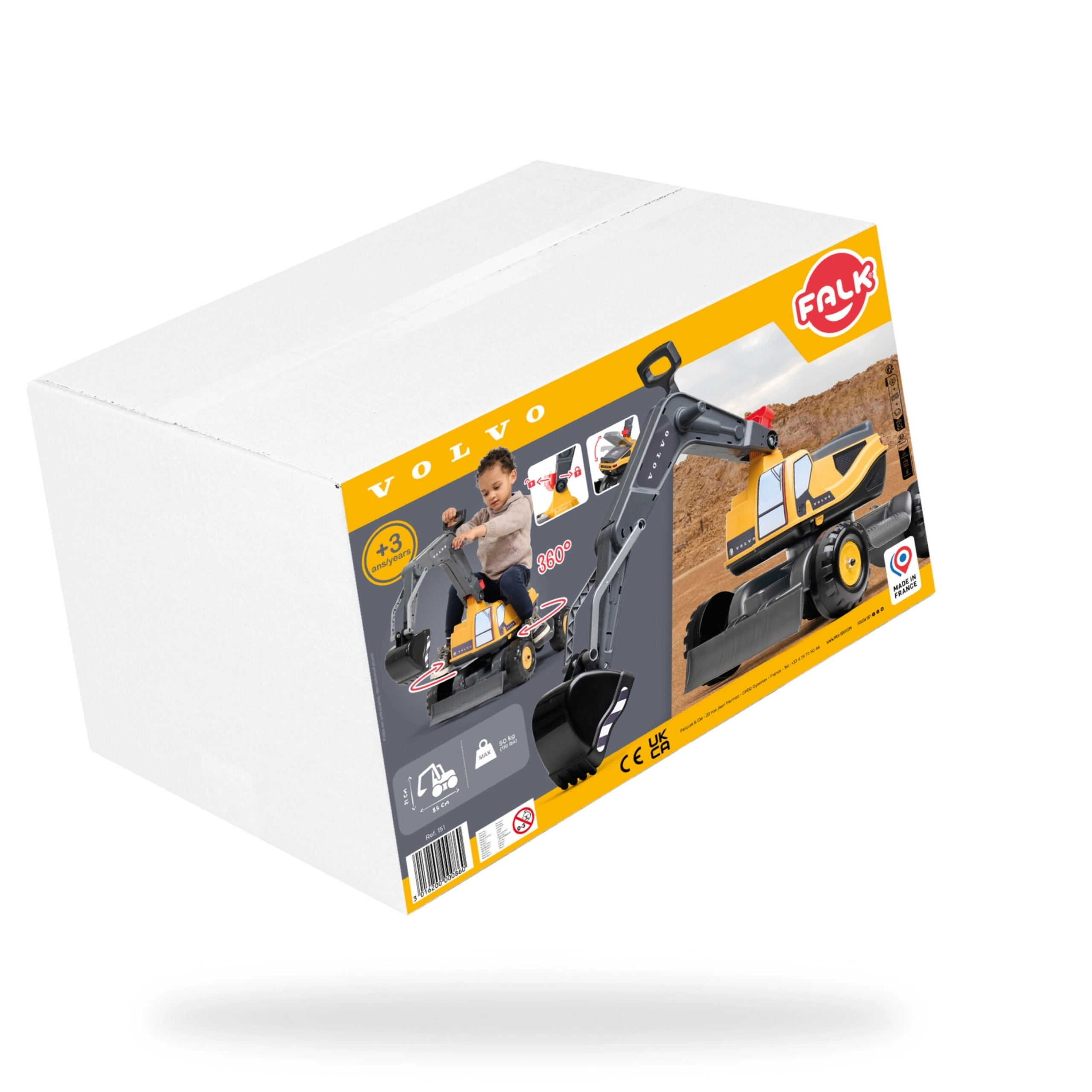 Denne realistiske Volvo-gravemaskine efterligner en ægte maskine og er designet til børn fra 3 år. Den robuste konstruktion og premium-plastik sikrer lang levetid, mens den 360° roterende kabine gør det muligt at grave og tippe materiale uden at flytte hele legetøjet.